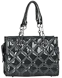 Pretty ladies, pay attention to this type of designer inspired shoulder handbag. Luxury has never been more affordable. Our lavish PU patent leather tote bag is so rich and elegant with a classical quilt pattern. Two rolled PU patent leather handles with chain links includes a fastener zippered closure for wide opening and secure your belongings. Large and roomy compartment completed with fully interior lining features 2 open top pockets and 1 zippered pocket holds your smaller belongings and cell phone whenever you need. A 8 inch x 5 inch partition zipper pocket lets you separate and organize letters or cosmetic. Stud legs prevent the underneath from dust or dirt. Polished gunmetal hardware imparts a cosmopolitan style and contrasts magnificently to the shiny PU patent leather. This formal fashion purse lets you tote from day to night anything you so desire. You'll be tempted to fill it to the brim with your essentials.
